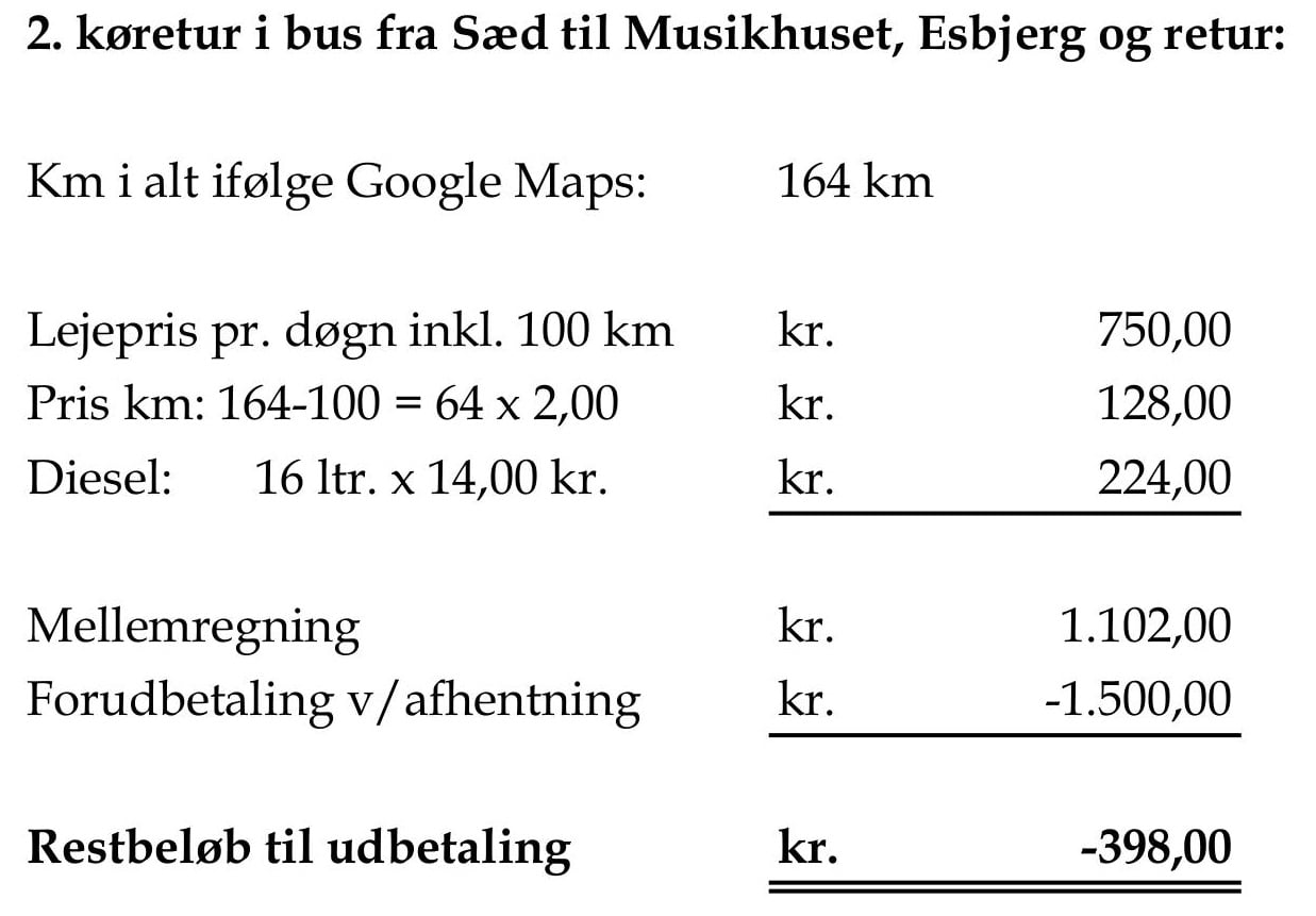 De resterende 64 km faktureres med 2 kr. pr. km.